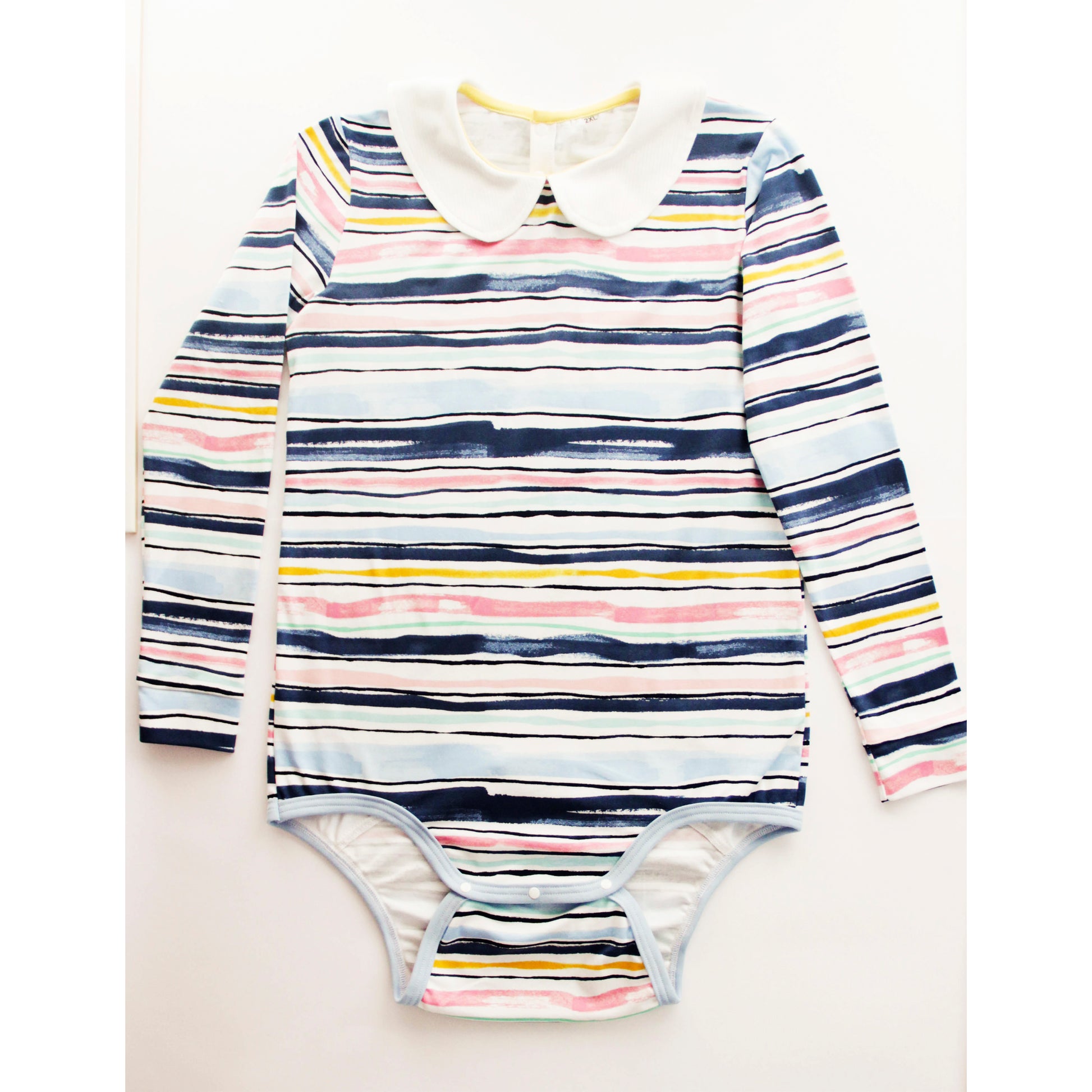 Explore our cozy and secure ABDL bodysuits, designed for maximum comfort and cuteness. Perfect for adult babies, diaper lovers, and those who enjoy DDLG or age regression play. These snug-fitting onesies keep everything in place, especially when you put on a diaper, offering a soft, supportive feel all day or night. Whether you're looking for playful prints or pastel perfection, our collection is made to make you feel little, loved, and secure. This product is for an adult man or woman. Long sleeve bodysuit, Peter Pan collar, head fastener at the back. Access to change diapers at the bottom with baby button. Everyday model for diaper lovers