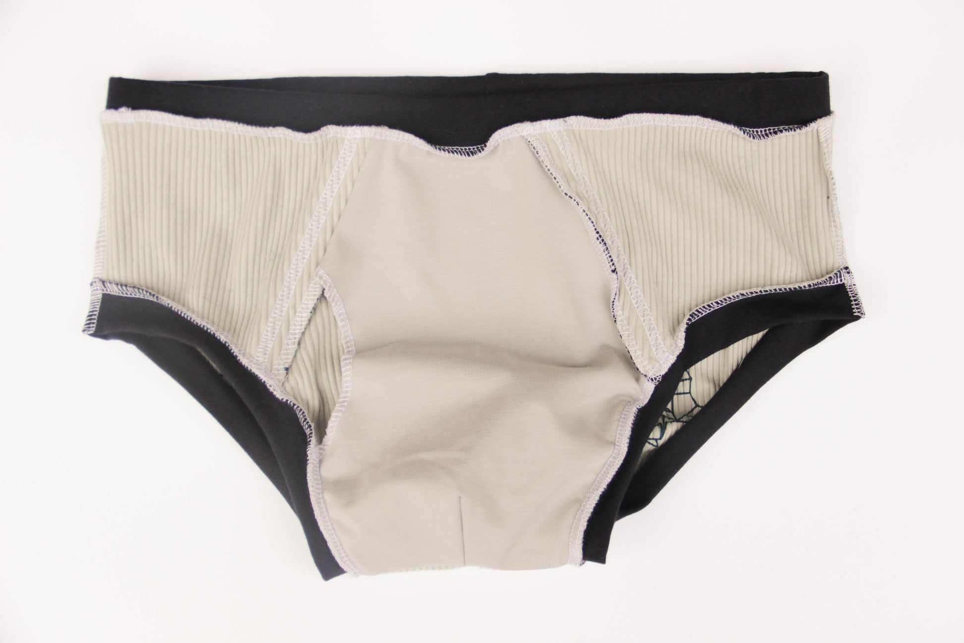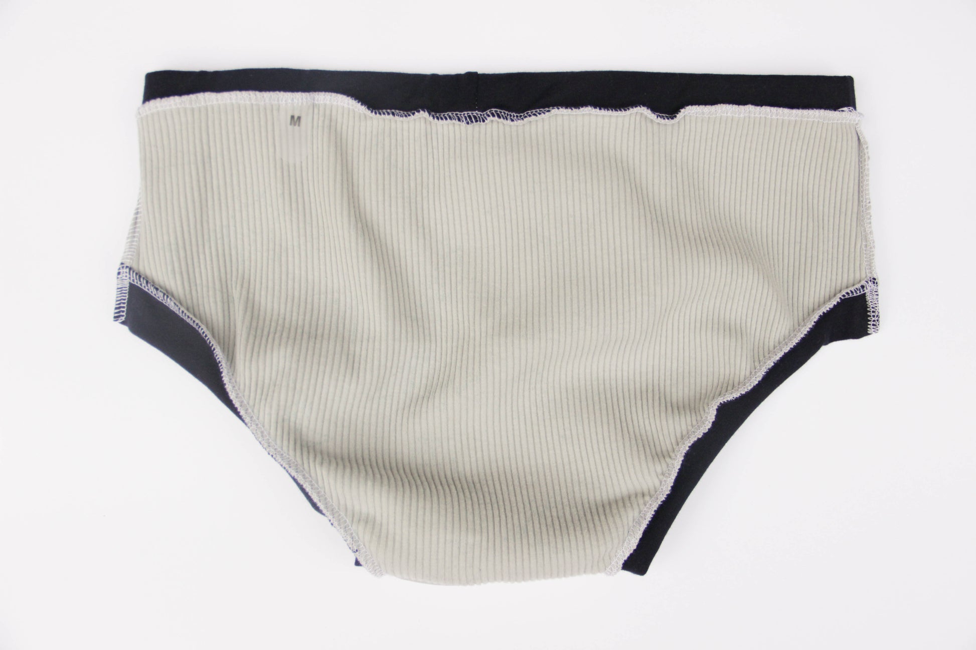 This product is panties for adult men. Comfortable for everyday wear. Elastic band 2 cm (0,8 inches), cotton lining inside. Panties have a window outside and inside. Along the outer seam 12-13 cm (5 inches)