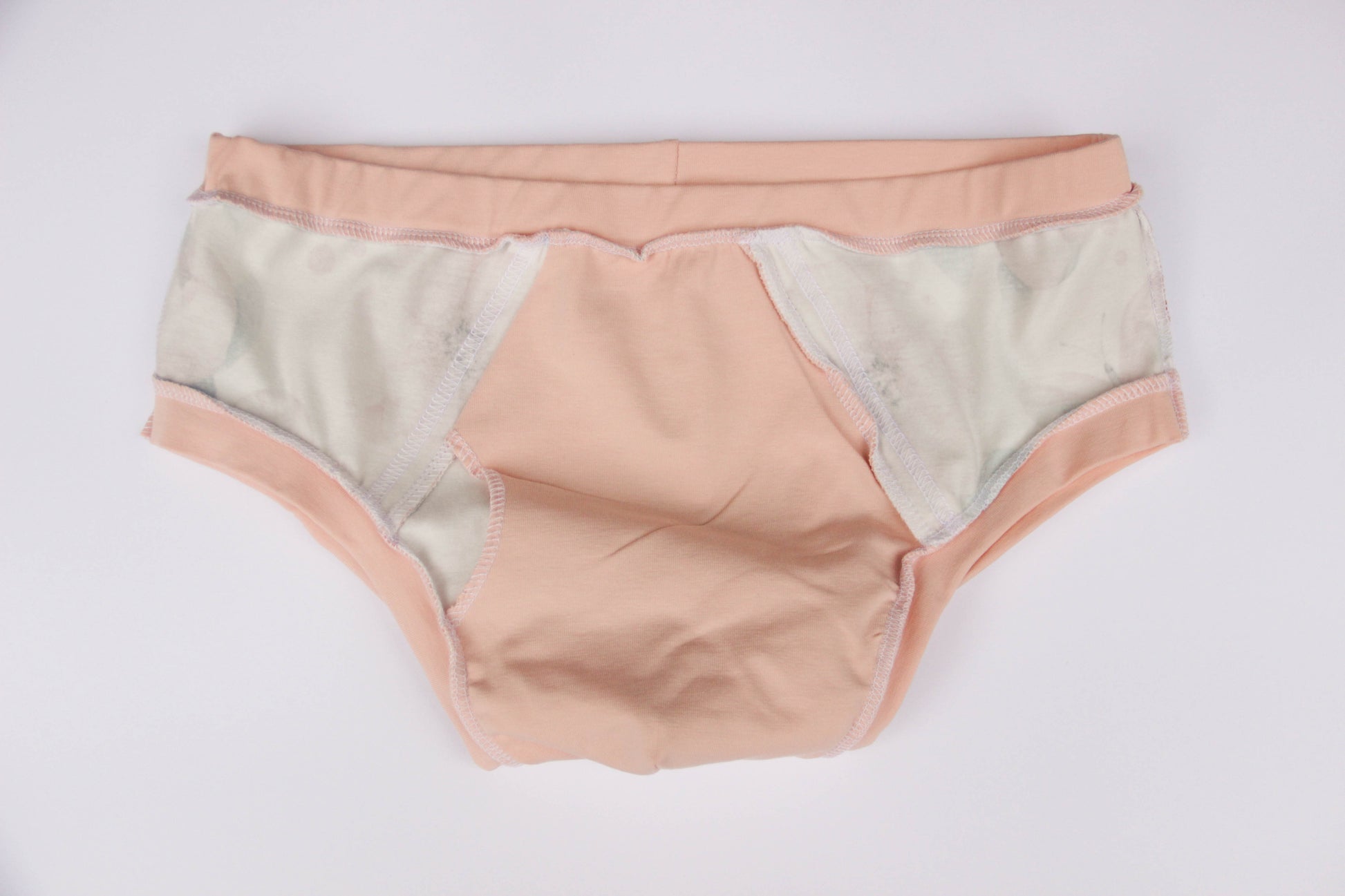 This product is panties for adult men. Comfortable for everyday wear. Elastic band 2 cm (0,8 inches), cotton lining inside. Panties have a window outside and inside. Along the outer seam 12-13 cm (5 inches)