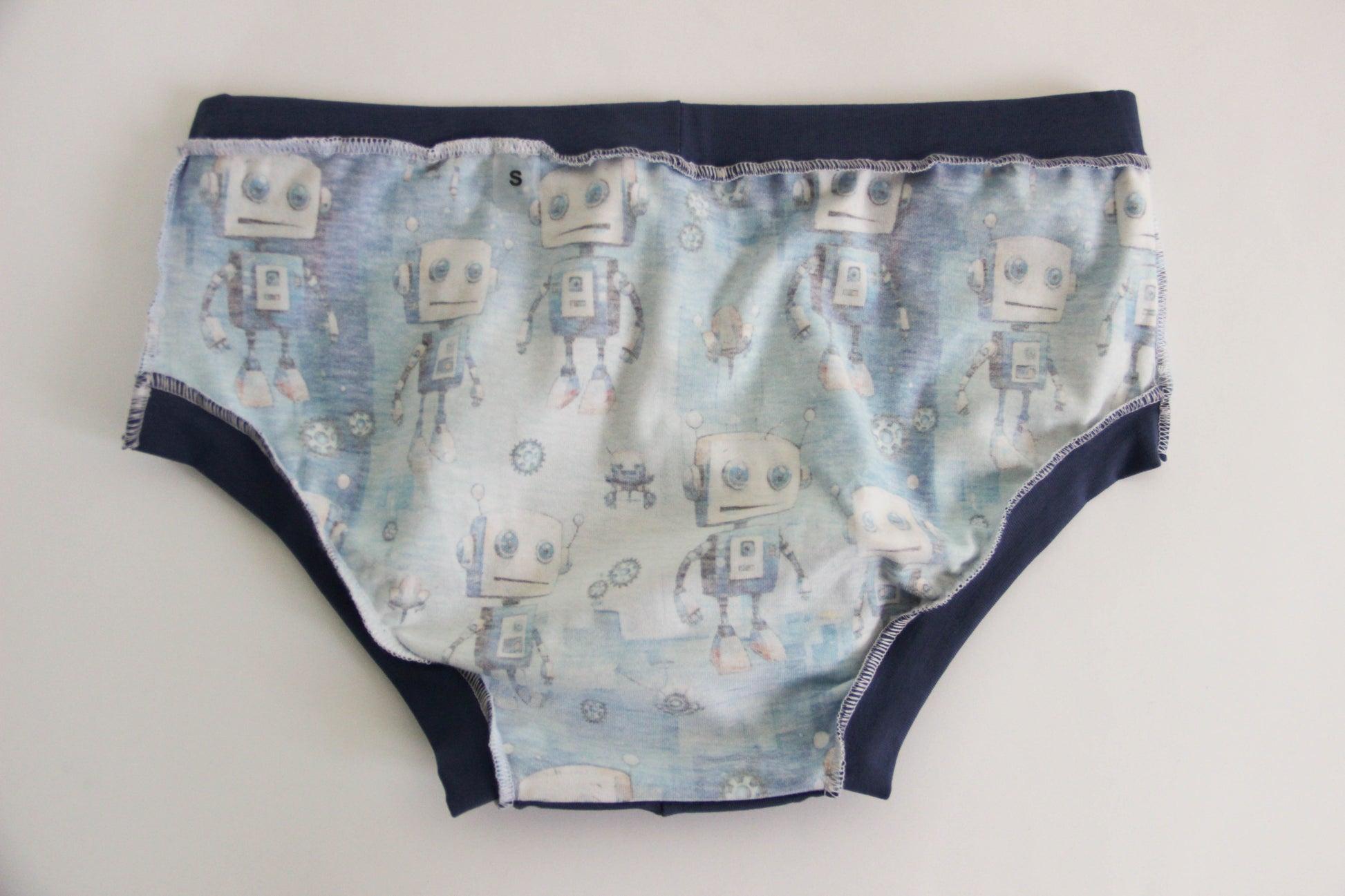 This product is panties for adult men. Comfortable for everyday wear. Elastic band 2 cm (0,8 inches), cotton lining inside. Panties have a window outside and inside. Along the outer seam 12-13 cm (5 inches)