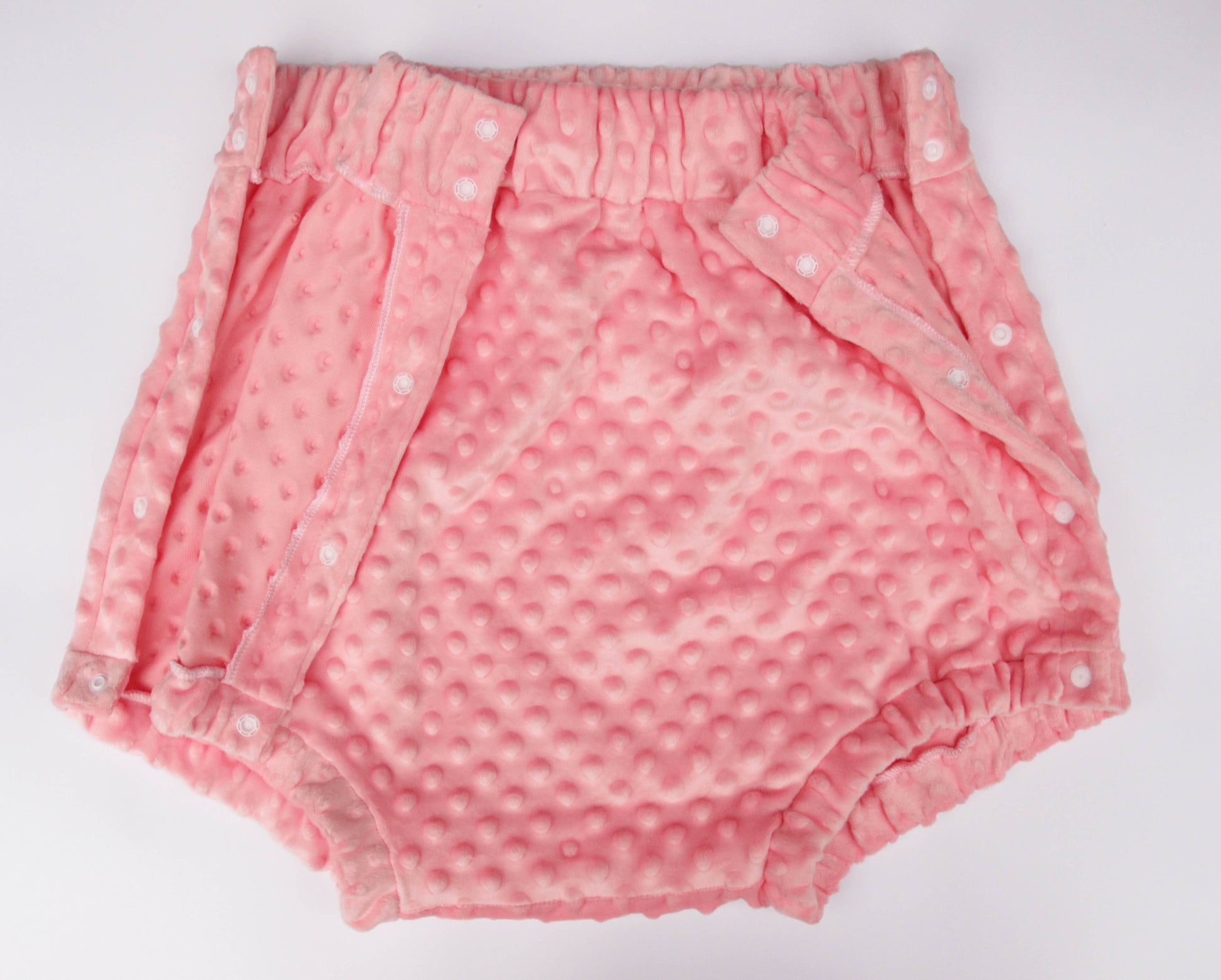 This is clothing for adults! Adult diaper cover, large size. Volumetric cover, soft baby fabric, 5 cm (2 inch) waist elastic, 2 cm (1 inch) elastic around the legs. Baby snap fasteners in the side. Easy access to diaper.