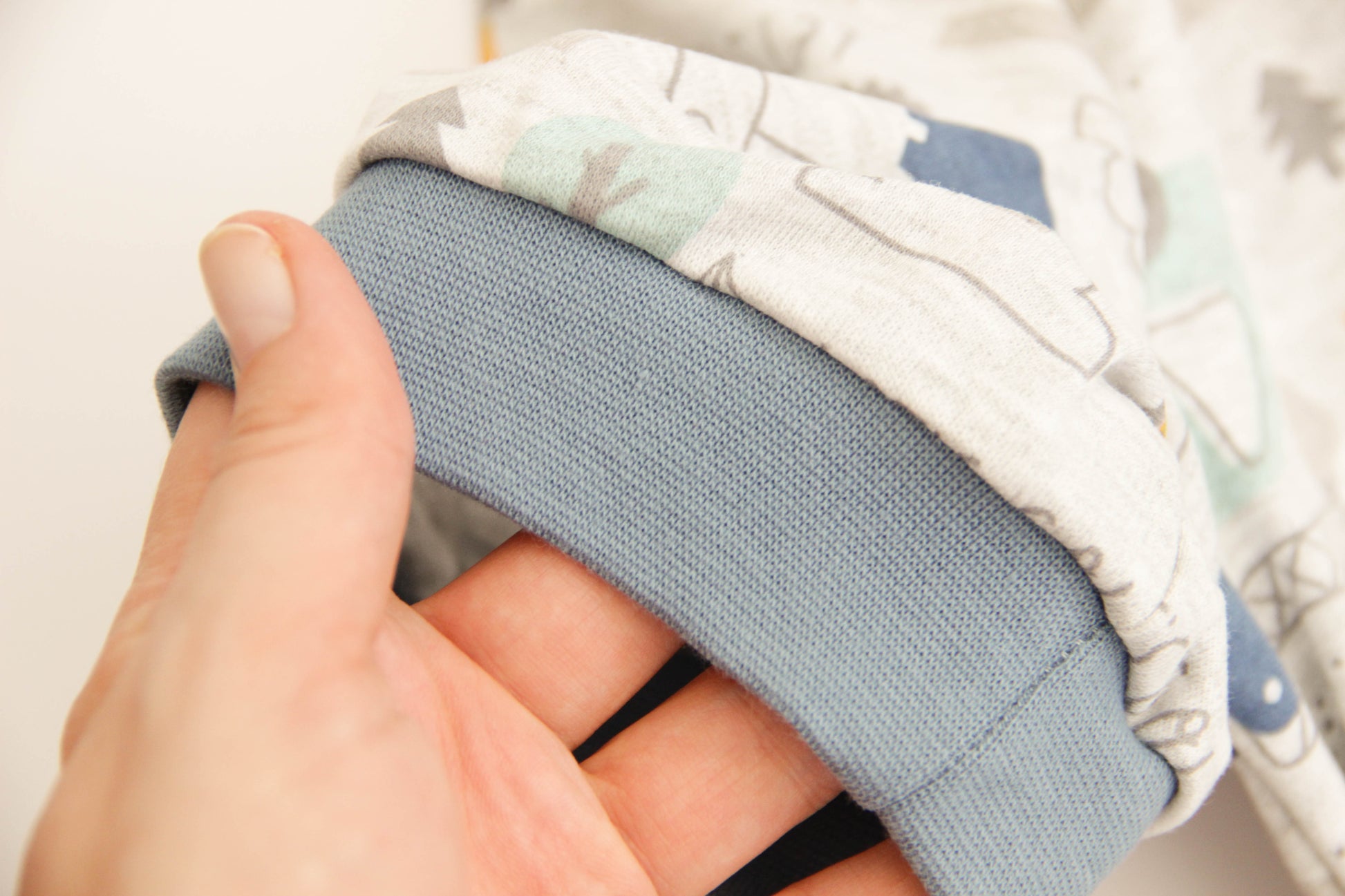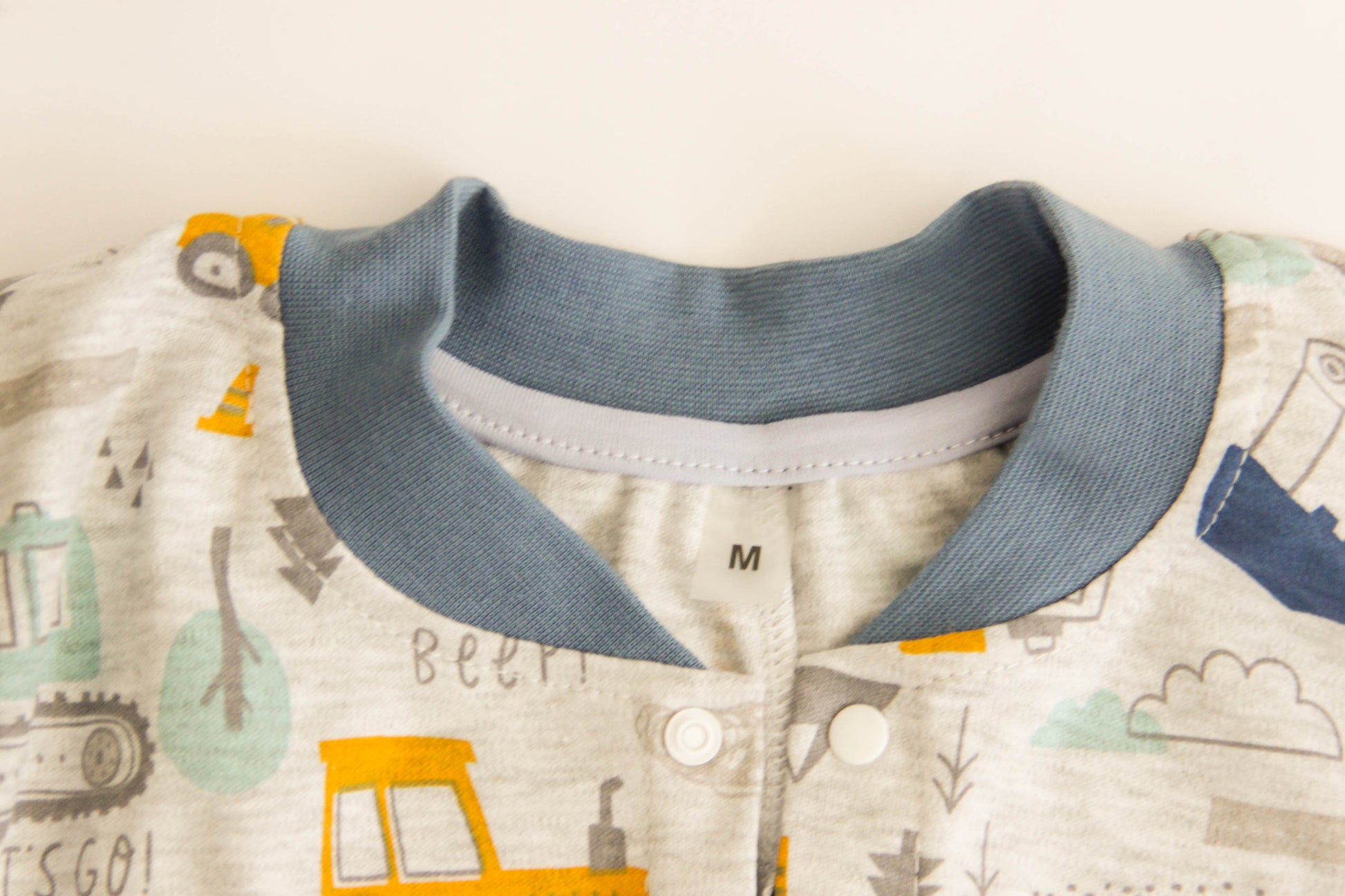 Fabric: 100% cotton, which is used in the manufacture of children's clothing. Cuffs and collar: 95% cotton + 5% elastane