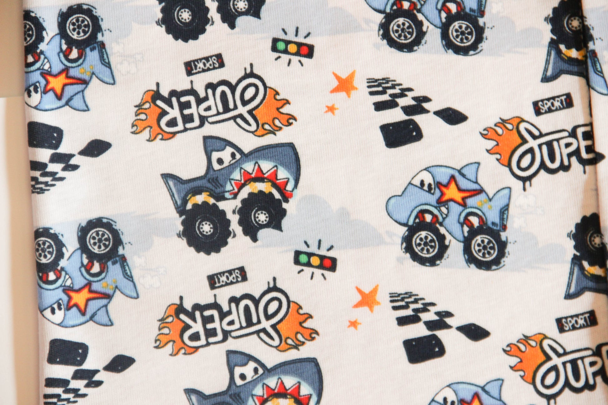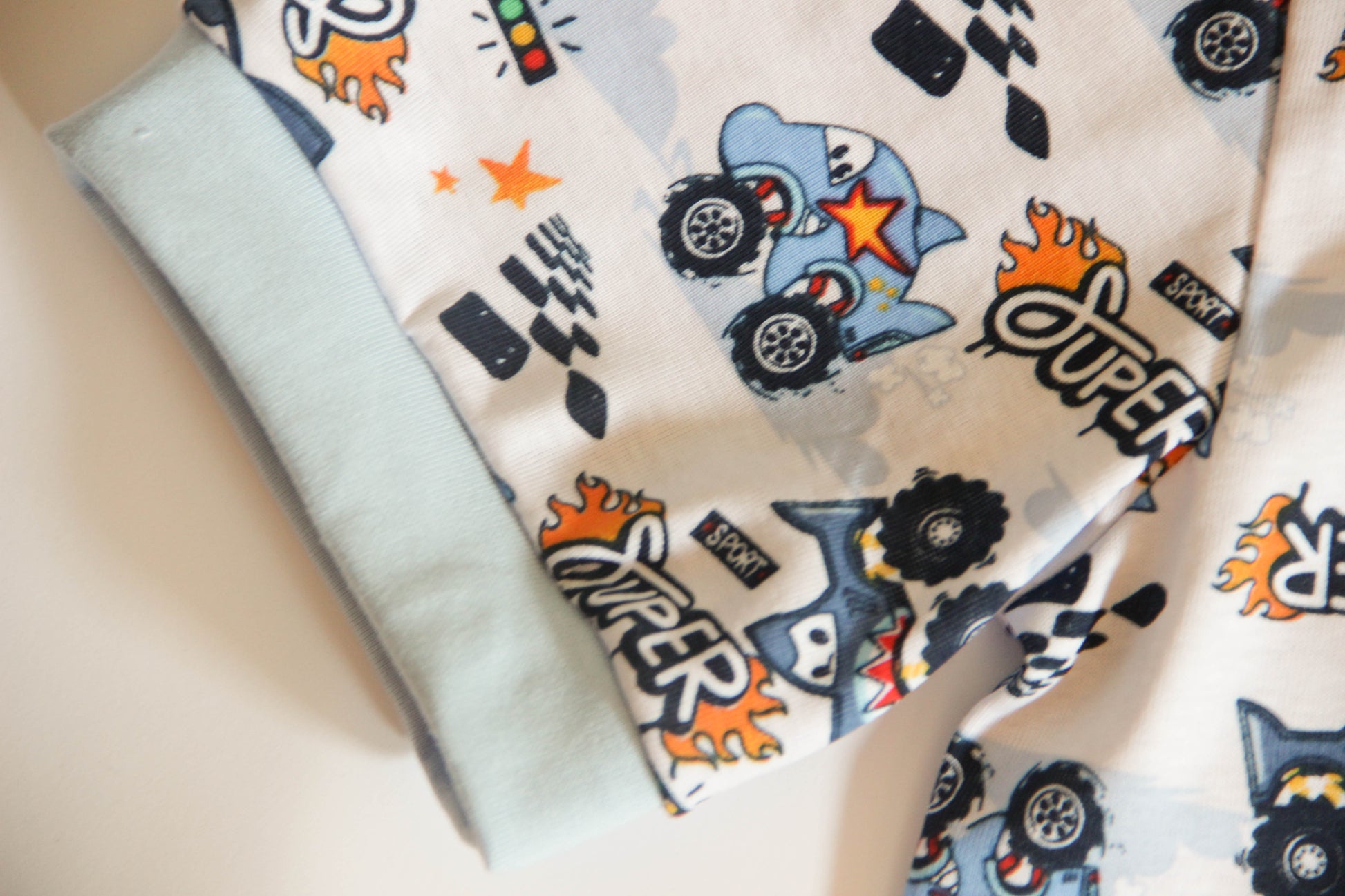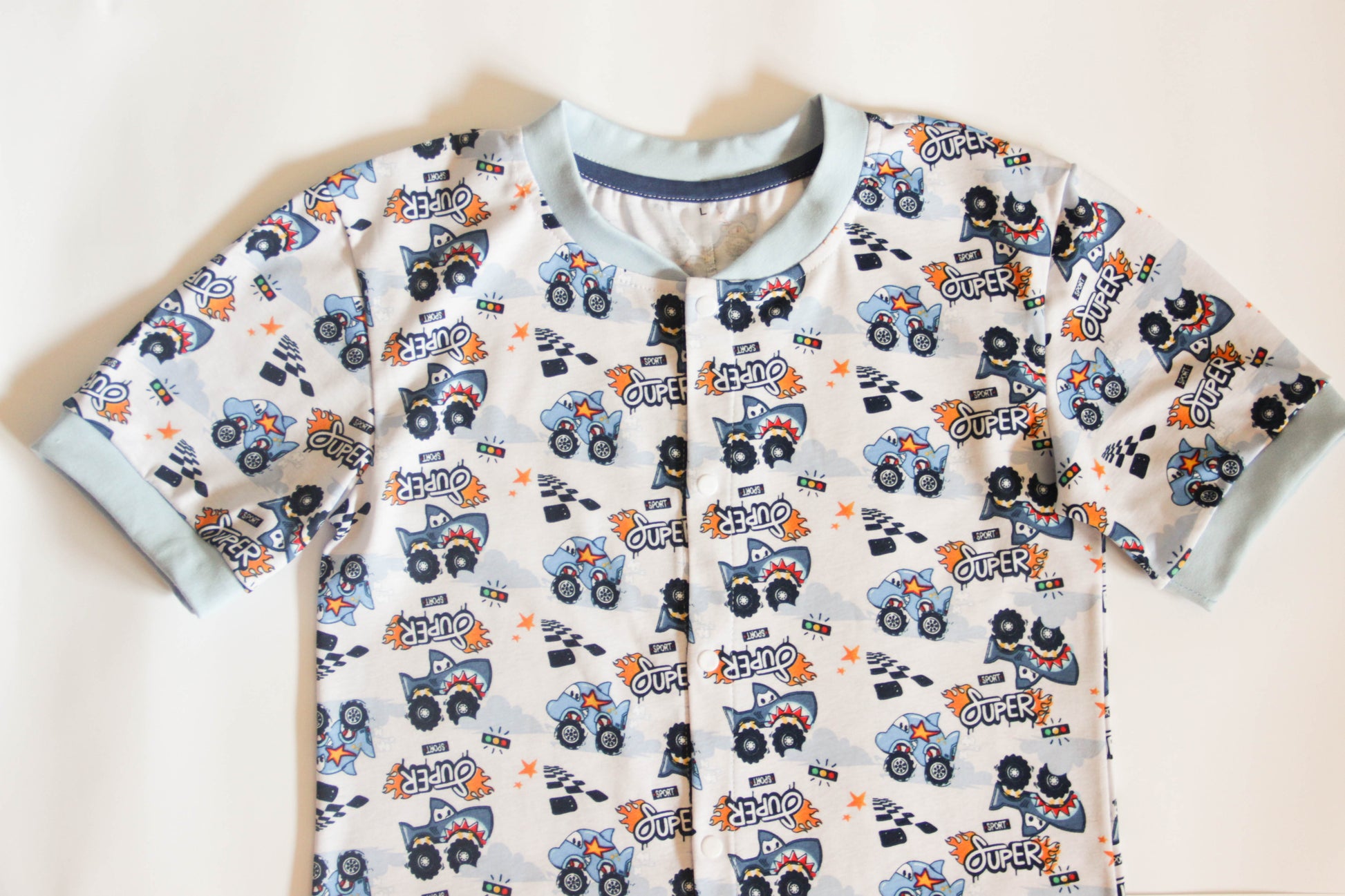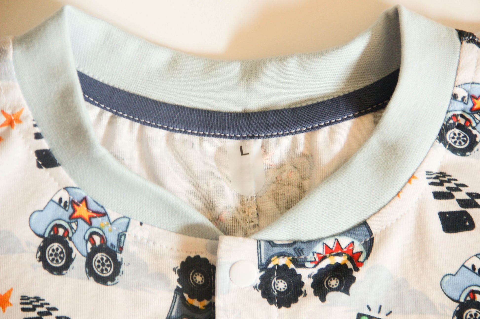Fabric: 100% cotton, which is used in the manufacture of children's clothing. Cuffs and collar: 95% cotton + 5% elastane