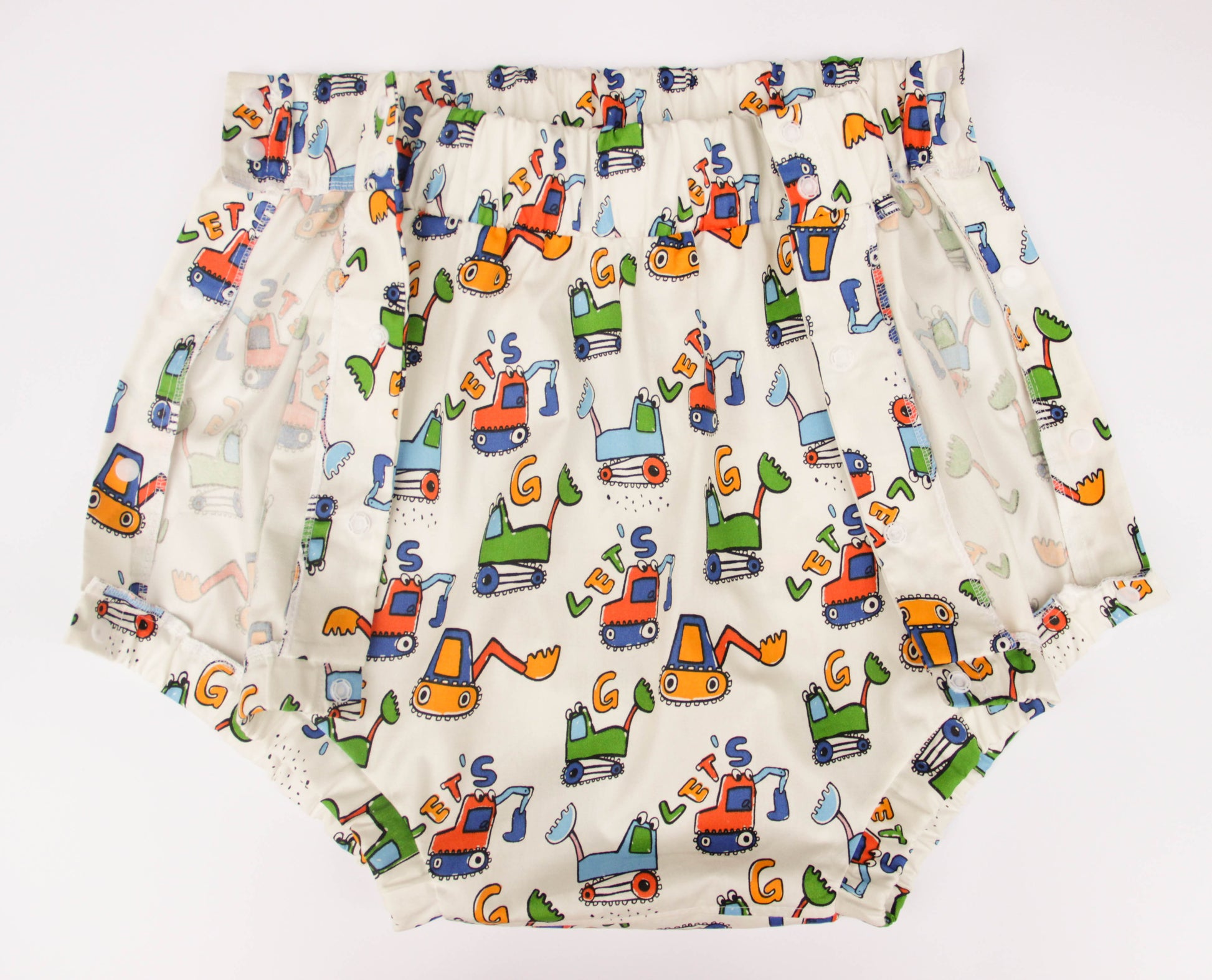 This is clothing for adults! Adult diaper cover, large size. Volumetric cover, soft baby fabric, 5 cm (2 inch) waist elastic, 2 cm (1 inch) elastic around the legs. Baby snap fasteners in the side seams. Easy access from both sides.