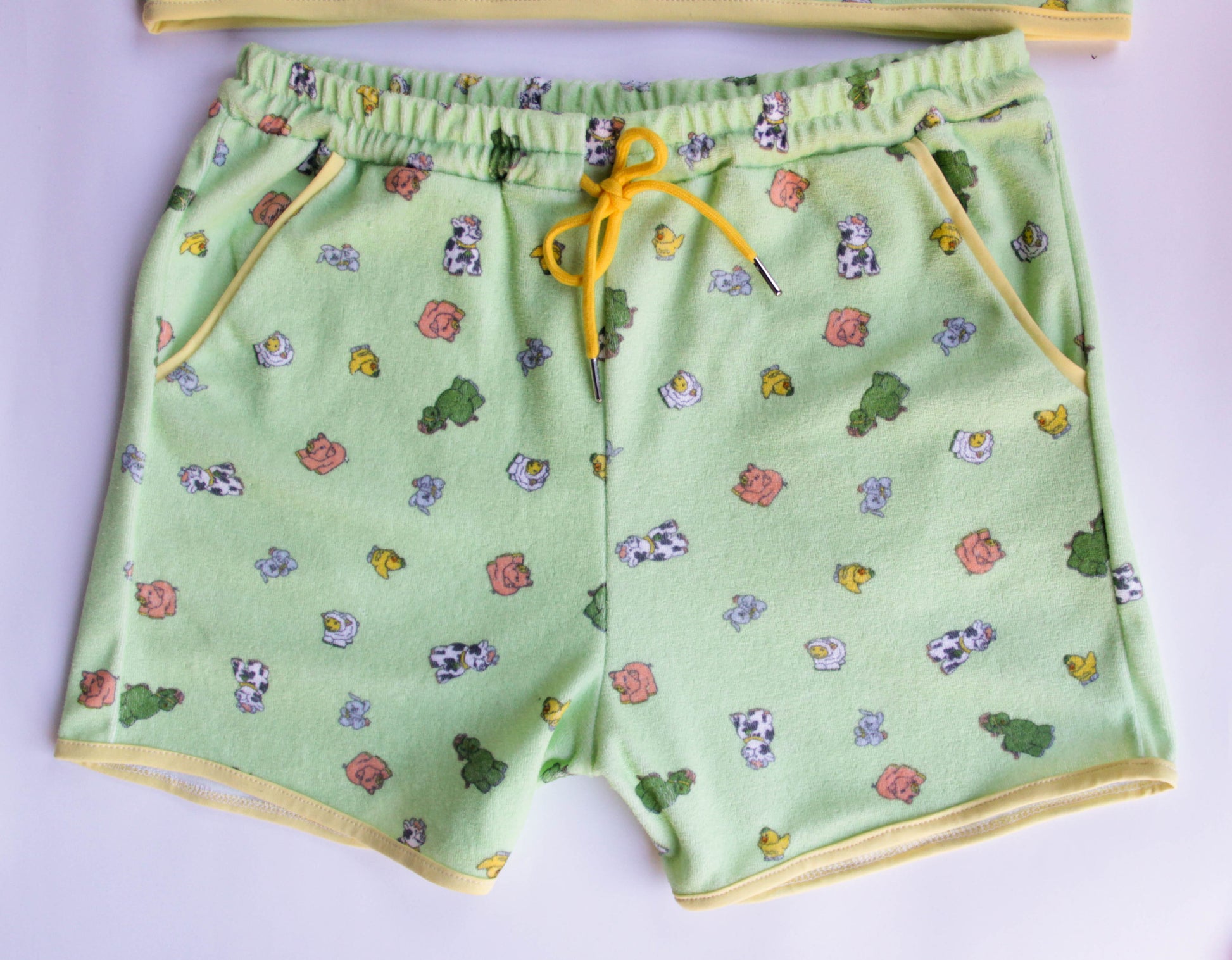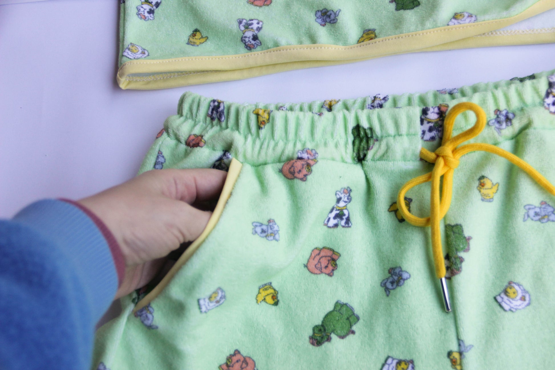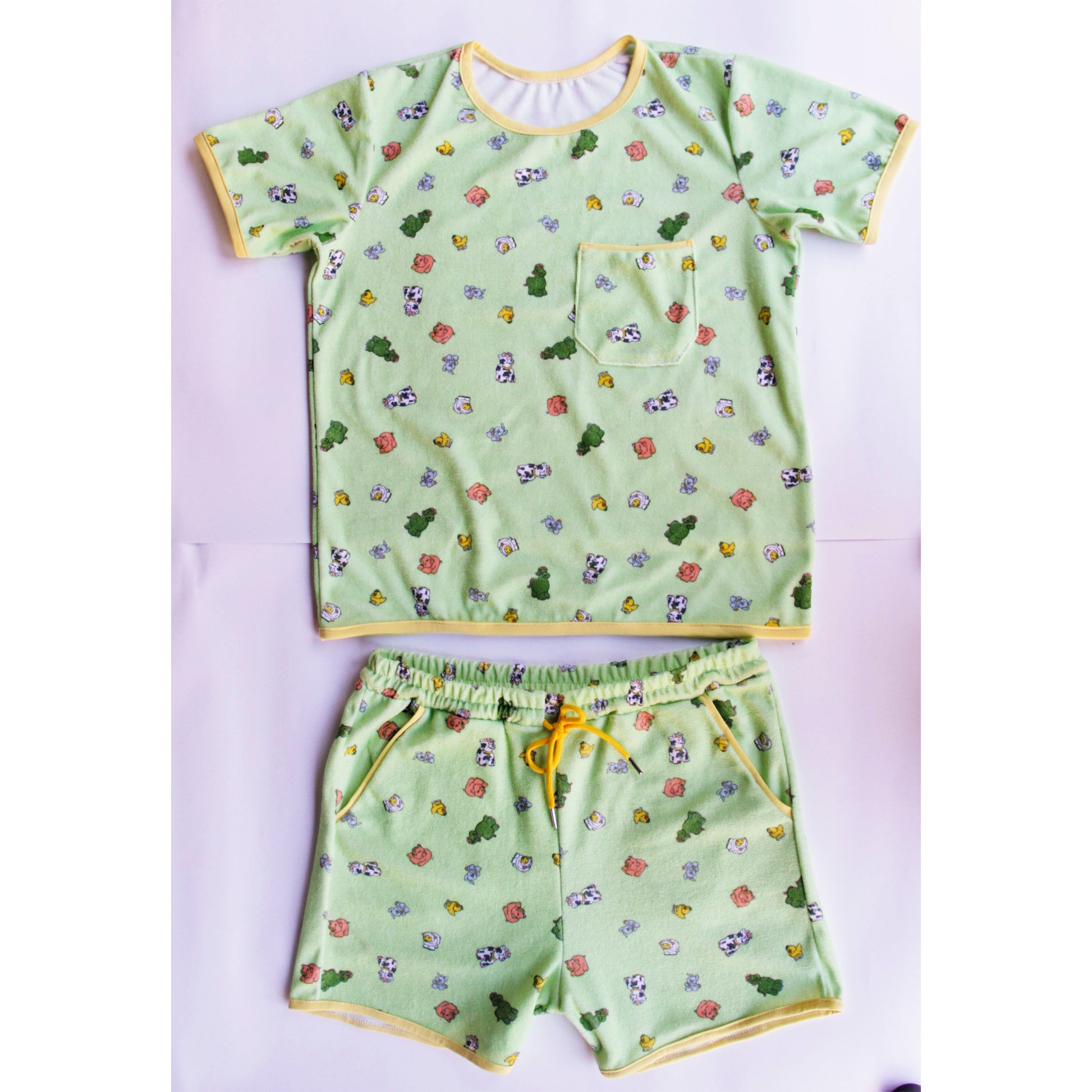 This is adult clothing!! A wonderful soft cotton terry suit for the summer. Put it on over a diaper and be the cutest baby. Simple but comfortable set. The T-shirt has a pocket on the chest. The shorts have pockets and a drawstring on the waist. Very soft clothing for lovers of children's style, made according to the model of retro outfits for toddlers