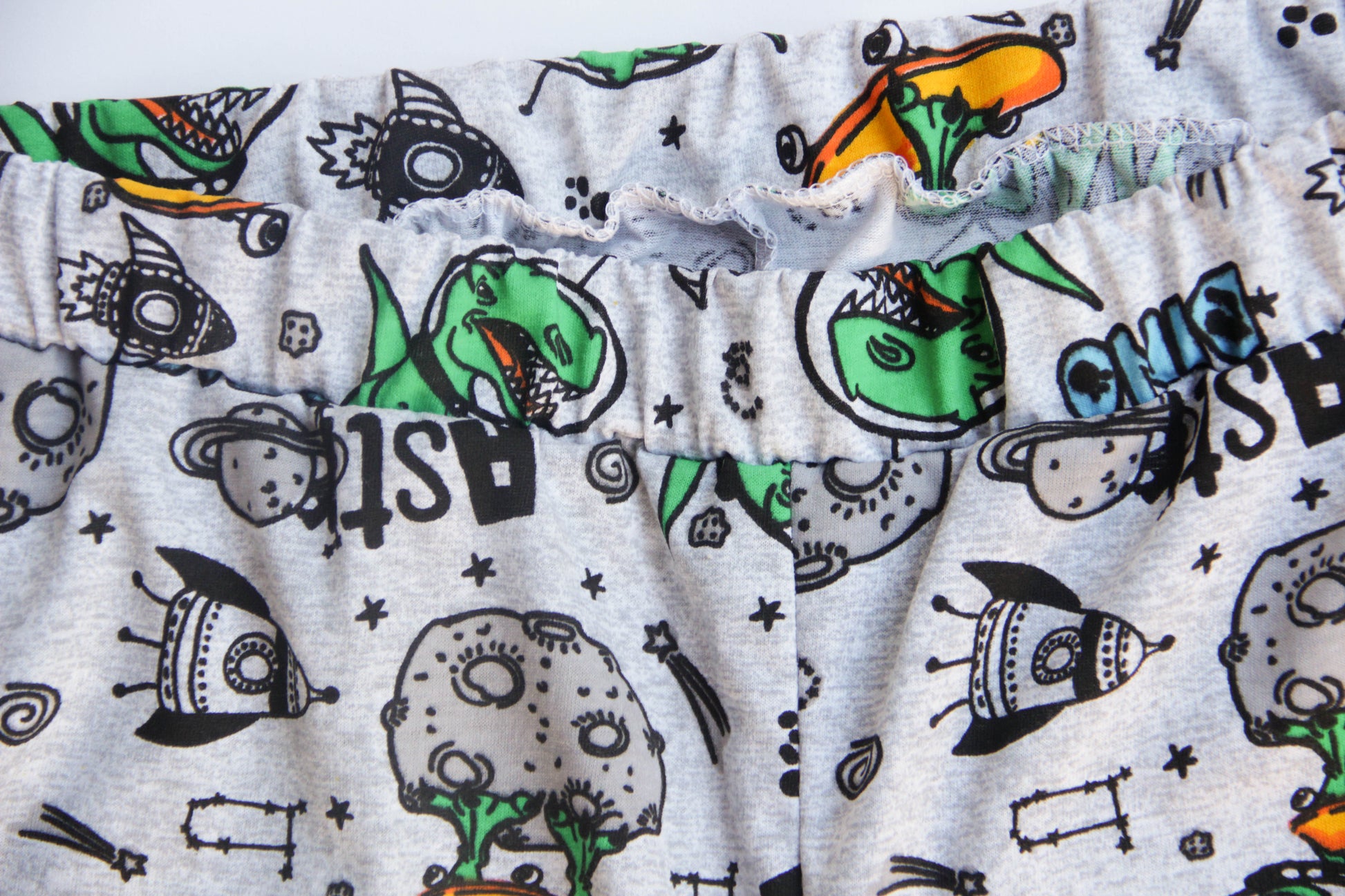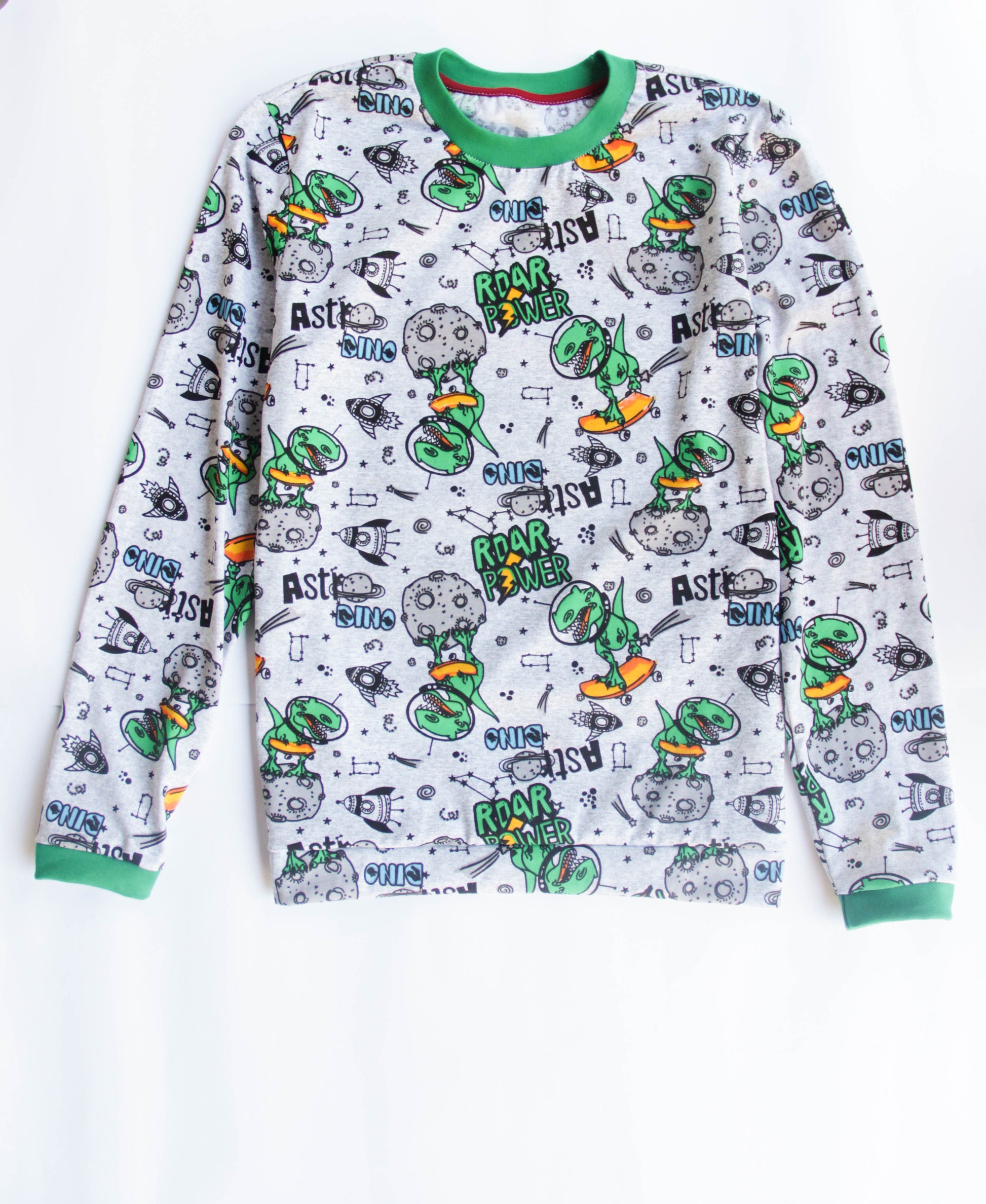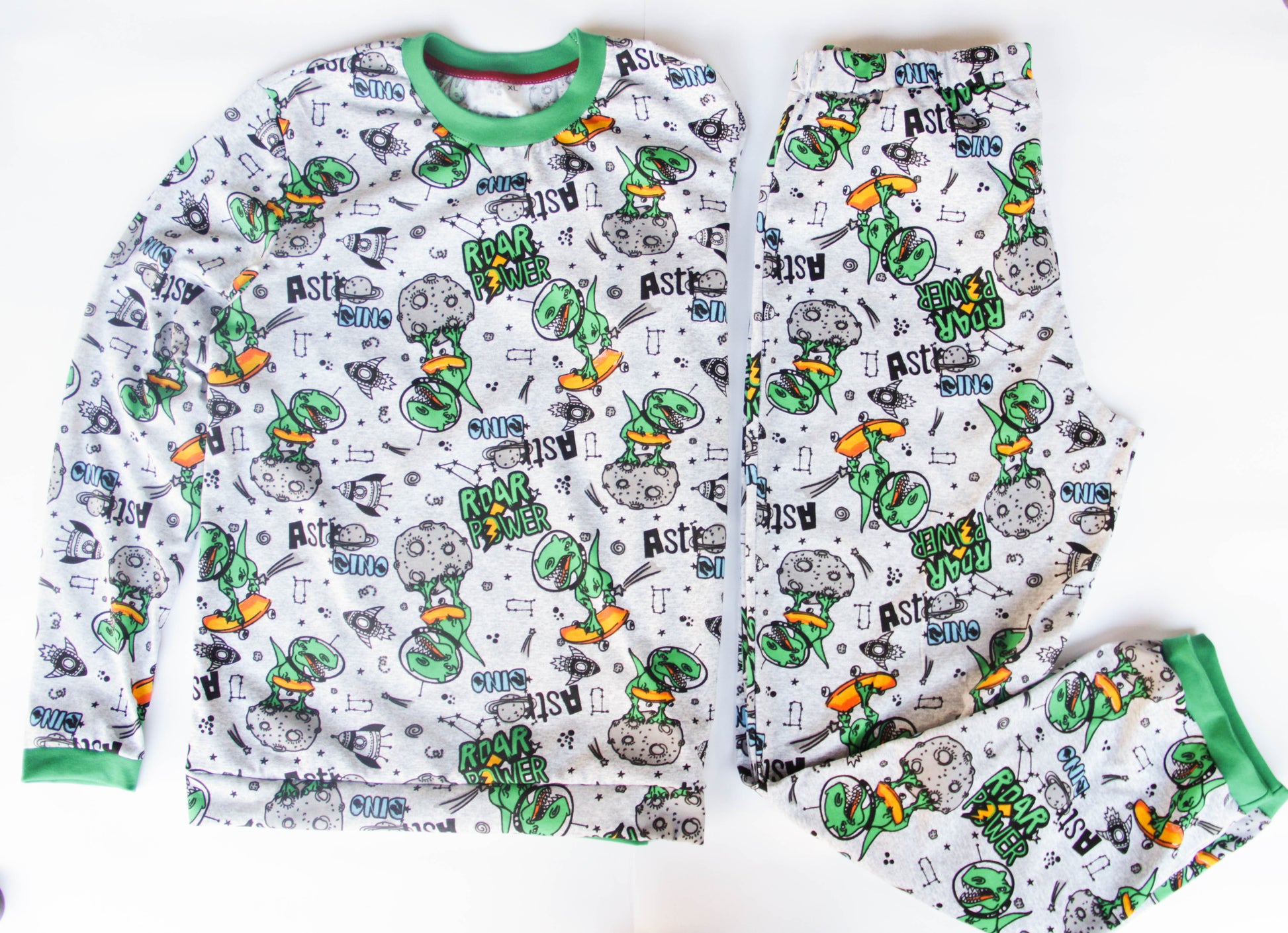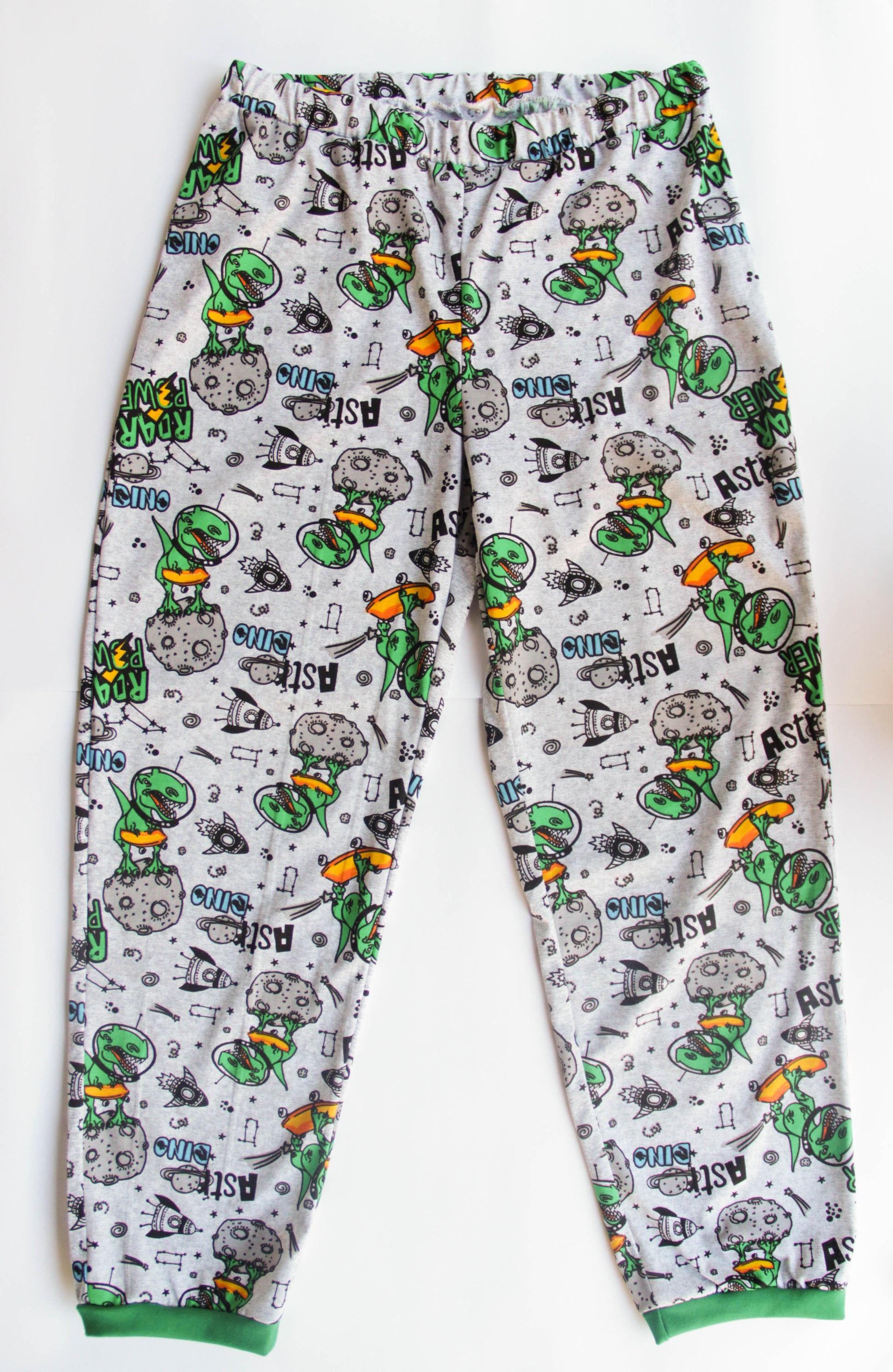 Pajamas for those who love dinosaurs and space, Lightweight cotton fabric, does not sweat, does not get sweaty, not hot in summer. Loose fit, the largest diaper will fit. Cuffs - cotton elastic. Sleep suit: sweater and pants with elastic, can be worn together or separately.